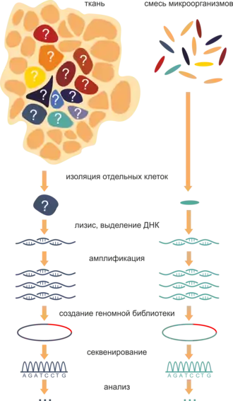 С появлением разнообразных методов секвенирования возникла возможность устанавливать последовательность геномной ДНК. Однако большинство данных на текущий момент получены при секвенировании образцов геномной ДНК, выделенных из популяций микроорганизмов или клеточных субпопуляций многоклеточных организмов[1]. Однако известно, что разнообразие внутри обеих групп может быть существенным, так как сами клетки вносят разный вклад в существование популяции или организма.