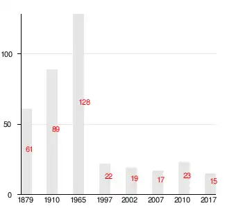 | 1997[15] | 2002[16] | 2007[17] | 2010[18] | 2017[1] |