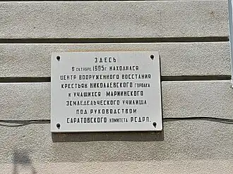 В конце XIX века Николаевский городок стал центром поволжского крестьянского революционного движения. Мариинское земледельческое училище стало опорным пунктом революционеров. Крестьяне и ученики в октябре 1905 года создали революционный крестьянский комитет, взяли власть в свои руки и осуществили ряд революционно-демократических преобразований. В 1908 году в докладе царю министр юстиции писал, что это «одно из самых выдающихся явлений смуты 1905 года»[2].