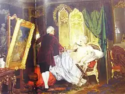 Кроме обязательных академических заданий на библейские и античные сюжеты, Семирадский в Петербурге пытался писать на самостоятельно выбранные темы. Картина «Людовик XIV после подписания смертных приговоров» утрачена, некоторое представление о её стиле можно составить по другой работе Семирадского — «Французский художник времён Людовика XV пишет портрет маркизы» (принадлежала великому князю Николаю Константиновичу). Семирадский работал тщательно: подбирал материал в Публичной библиотеке, особое внимание уделяя быту, костюмам и мебели «Галантного века». Однако куртуазная культура показалась ему «слишком легковесной», лишённой положительного этического идеала, что для Семирадского, склонного к морализаторству, было существенным[32]. Пробовал он себя и в жанровой живописи, но художественные достоинства этих его работ невелики; в академических программах на заданную тему он демонстрировал совершенно другой уровень профессионализма. Тем не менее жанровые сцены на украинские сюжеты продавались и даже выставлялись в Обществе поощрения художников[33].
