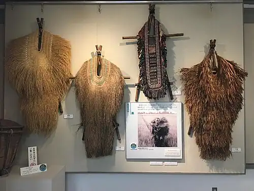 Экспозиция музея начинается с подъёма по лестнице на второй этаж. Первая экспозиция включает в себя предметы, связанные с путешествиями (старые чемоданы, журналы и открытки). Следующая экспозиция представляет старое сельскохозяйственное оборудование (XIX века и более раннее). Помочь в понимании функций старинных механизмов помогают описания их функций на японском и английском языках. В следующей экспозиции представлена соломенная одежда и сандалии. Представлен раздел старых японских игрушек.[3]