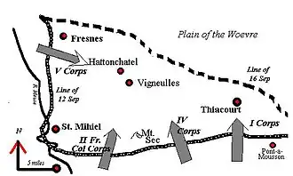 Начало наступления было намечено на 10 сентября, но из-за неготовности французской артиллерии было перенесено на 12 сентября. Союзники сосредоточили 17 пехотных дивизий (из них 3 французские), 2900 орудий, 273 танка и 1100 самолетов.