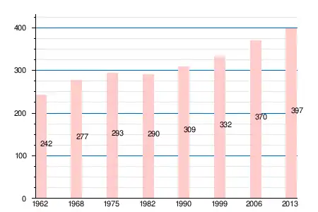 | 242 | 277 | 293 | 290 | 309 | 332 | 370 | 381 | 376 | 387 | 397 |