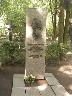 Умер 17 августа 1977 года в Ленинграде. Похоронен на Литераторских мостках Волковского кладбища. Надгробие выполнено скульптором Л. К. Лазаревым и архитектором Л. И. Копыловским в 1986 году.