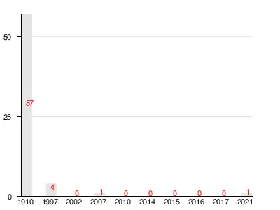 | 1910 | 1997 | 2007[14] | 2010[15] | 2014[16] | 2015[17] | 2016[18] |