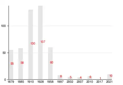 Число жителей по семейным спискам 1879 г.: 29 м. п., 26 ж. п.; по приходским сведениям 1879 г.: 37 м. п., 36 ж. п[4].