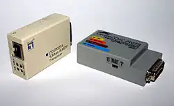 Если приёмопередатчик является связующим звеном между оптическим и медным кабелями, то его часто называют средопреобразователем.