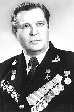 - Герой Социалистического Труда (1971) — Указом Президиума Верховного Совета СССР (неопубликованным) от 5 апреля 1971 года «за выдающиеся успехи в выполнении заданий пятилетнего плана по строительству и вводу в действие производственных мощностей, жилых домов и объектов культурно-бытового назначения»[4].