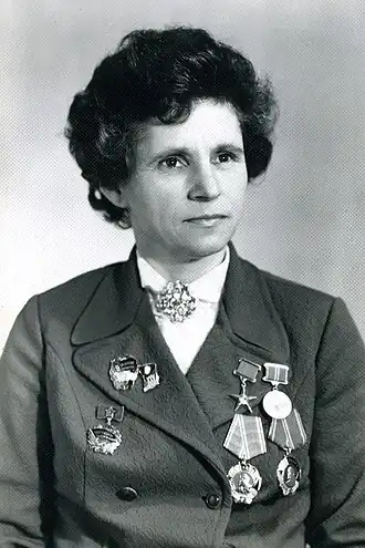 Указом Президиума Верховного Совета СССР от 4 марта 1976 года удостоена звания Героя Социалистического Труда за выдающиеся успехи в выполнении заданий девятой пятилетки, принятых социалистических обязательств, большой творческий вклад в увеличение производства товаров народного потребления и улучшения их качества.
