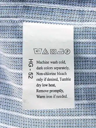 Существуют базовые символы, например: сушка, отбеливание, стирка, глажка, — а также некоторые дополнительные знаки. Символы располагаются на изделии на пришитом к нему специальном ярлыке. Место расположения ярлыка с символами по уходу, волокнистым составом ткани и другой возможной информацией, регламентируется ГОСТом 10581-91 «Изделия швейные. Маркировка, упаковка, транспортирование и хранение».