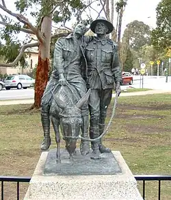 ![]() Джон Симпсон (в центре) с Даффи, своим осликом, везут раненого солдата | |