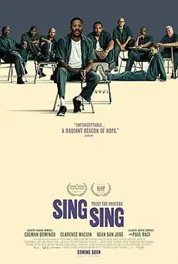 «Синг-Синг» (англ. Sing Sing) — американский драматический фильм 2023 года. Сюжет основан на реально существующей программе реабилитации в тюрьме Синг-Синг, где заключённых перевоспитывают с помощью театральных постановок[3]. Режиссёром и соавтором сценария ленты выступил Грег Куидар[4]. Главные роли исполнили профессиональные актёры Колман Доминго и Пол Рейси, а также многие бывшие выпускники этой программы, в том числе Кларенс Маклин и Джон-Адриан Веласкес[3][5][6]. Премьера фильма состоялась в 2023 году на Международном кинофестивале в Торонто[7].