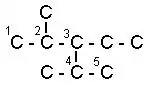 Если же одинаковые радикалы, определяющие начало нумерации, находятся на равном удалении от обоих концов цепи, но с одной стороны их имеется большее число, чем с другой, то нумерацию начинают с того конца, где число разветвлений больше.
