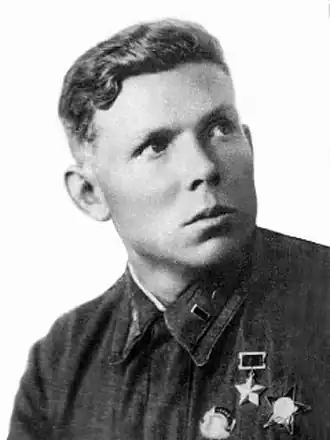 - ↑ Указ Президиума Верховного Совета СССР «О присвоении звания Героя Советского Союза начальствующему составу Военно-воздушных сил Красной Армии» от 20 июня 1942 года // Ведомости Верховного Совета Союза Советских Социалистических Республик : газета. — 1942. — 30 июня (№ 24 (183)). — С. 1. Архивировано 8 ноября 2021 года.