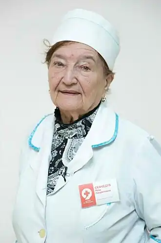 - ↑ Губернiя Daily. 94-летняя россиянка до сих пор работает гинекологом: первым детям, которых она приняла, уже по 60 лет! Daily (12 октября 2017). Дата обращения: 1 июня 2019. Архивировано 1 июня 2019 года.