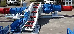 Скребковый конвейер — (англ. flight conveyor) транспортирующее устройство непрерывного действия, в котором перемещение насыпных грузов осуществляется по неподвижному жёлобу — рештаку, с помощью скребков, закрепленных на одной или нескольких тяговых цепях и погруженных в слой насыпного груза.
