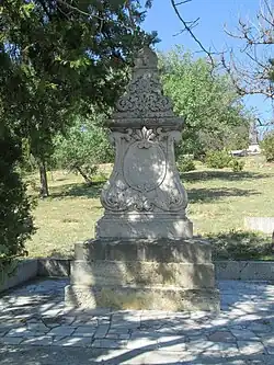 Объект культурного наследия народов РФ регионального значения. Рег. № 921711306400005 (ЕГРОКН)). Надпись: «Одесского полка / командир полковник /Александр Петрович / Скюдери / убит 4 авг. 1855 года»