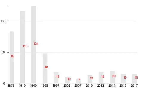 | 1997[15] | 2002[16] | 2007[17] | 2010[18] | 2013[19] | 2014[20] | 2017[1] |