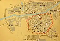 На плане Смоленска XVIII века слобода Донщина (без названий улиц) находится в левой верхней части плана.