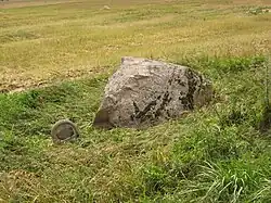 Расположен в 500 м от деревни. Тёмно-серый разгнейсованный гранит с розовыми жилками и кристаллами полевого шпата. Длина 5,4 м, ширина 1,9 м, высота 1,3 м, в обводе 12 метров, объём 14 м³, масса около 36 тонн. Принесен ледником около 150 тысяч лет назад из Фенаскандии.