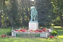Часто повторяемая, но недостоверная история гласит, что Ричарду Смиту, спасшему похищенную дочь вождя коренных американцев, было сказано, что вождь предоставит право собственности на все земли, которые Смит сможет объехать за один день верхом на быке. Смит решил прокатиться верхом на быке в самый длинный день в году (день летнего солнцестояния) 1665 года, чтобы «за один день» проехать больше времени. Говорят, что земля, которую он приобрел таким образом, приблизительно соответствует границам нынешнего города. Большая статуя быка Смита, известная как Шепот, воздает дань уважения легенде на развилке Иерихонской магистрали (шоссе 25 штата Нью-Йорк) и Сент-Джонленд-роуд (шоссе 25А штата Нью-Йорк)[2][3].