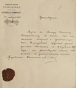 - ↑ Из дневника председателя Нижегородской губернской ученой архивной комиссии А.Я. Садовского. Архивы России. Издания и публикации (1910). Дата обращения: 15 июня 2017. Архивировано из оригинала 28 февраля 2017 года.