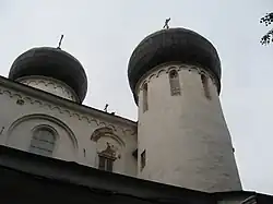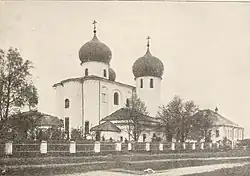 - ↑ Наряду с Софийским и Николо-Дворищенским соборами Новгорода.