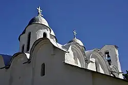 Представляет собой шестистолпный, трёхапсидный каменный храм с тремя шлемовидными главами, покрытый позакомарно. Здание имеет приземистые пропорции, выглядит вросшим в землю (из-за поднятия культурного слоя на 1,5 метра). Простота постройки подчёркнута почти полным отсутствием декора фасадов.