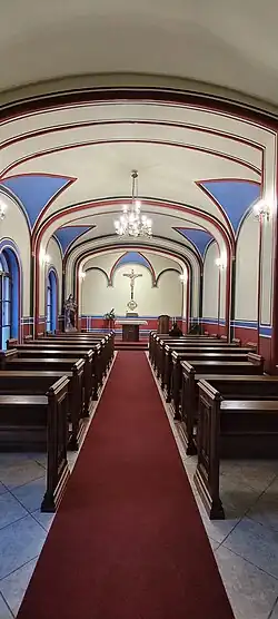 Из дуба были изготовлены 3 исповедальни, амвон, скамьи для прихожан. Конфессиналы внутри были обиты красным сукном.