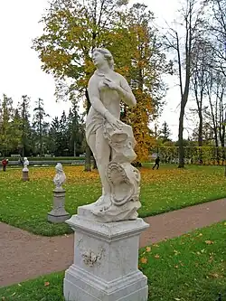 Вслед за Петром интерес к венецианской скульптуре проявили А. Д. Меншиков и Ф. М. Апраксин, для них, так же как и для Петра скульптуру в Венеции заказывал Савва Владиславич-Рагузинский[5]. Садовая скульптура (свинцовая и мраморная) из владений Меншикова и Апраксина, перешедших соответственно к А. И. Остерману и Р. Г. Левенвольде, в 1743 году, по распоряжению императрицы Елизаветы Петровны, должна была быть отправлена в Царское Село[6].