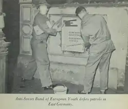 Несогласные со сталинским курсом немцы клеят в ГДР плакат «Твоя родина — Германия, твоё отечество — Европа»