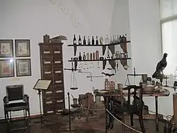 Двухэтажное здание. Памятник архитектуры 17-18 веков. Первая на территории Беларуси аптека была основана в 1687 году. Каменное здание было построено в 1709 году, а в 1763 был достроен второй этаж. Здание почти постоянно выполняло первоначальную функцию — аптеки. Только после 1944 года до начала 90 гг. 20 в. в здании располагался салон мебели. Сейчас в здании также располагается аптека, медицинский музей, со стороны двора — магазин религиозных книг.