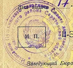 Исполком Пушкинского Сельского Совета Фёдоровского района 17 января 1967 г. с 1 января район Советский, но печать ещё Фёдоровского.