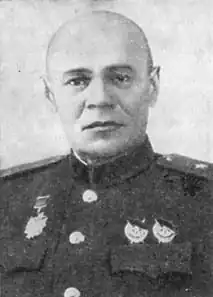 С 15 сентября 1941 по 5 октября 1942 командир 330-й стрелковой дивизии 10-й армии (Западный фронт). 7 декабря 1941 г. внезапной атакой занял г. Михайлов.