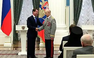 - Орден Жукова (25 апреля 1995 года) — за отличия в руководстве войсками при проведении боевых операций в период Великой Отечественной войны 1941—1945 годов[27].