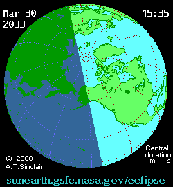 | Солнечное затмение 30 марта 2033 года | |||||||