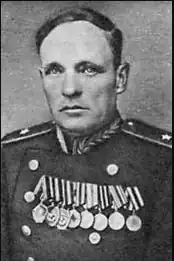 - 1 2 Награждён в соответствии с Указом Президиума Верховного Совета СССР от 04.06.1944 «О награждении орденами и медалями за выслугу лет в Красной Армии»