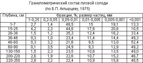 Также обнаруживается дифференциация профиля по гранулометрическому составу: осолоделый горизонт обеднён илистыми частицами, а иллювиальный обогащён ими.