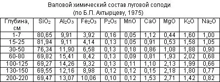 - лугово-болотные (грунтовые воды на глубине 1-1,5 м)
