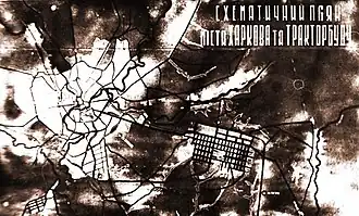 Архитектор и государственный деятель Н. А. Милютин под влиянием самых разных идей эпохи, стремясь избежать крайностей, создал поточно-функциональную схему планировки города. Эту концепцию он изложил в книге 1930 года «Соцгород. Проблема строительства социалистических городов». Одним из определяющих факторов планировки стал прогрессивный поточный принцип производства. Н. А. Милютин зонировал город параллельными полосами[58]: