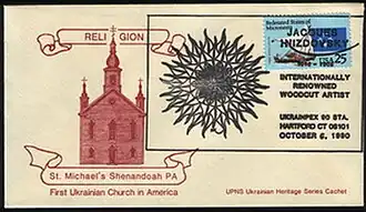 ![]() Почтовый конверт Украины, посвящённый 50-летию Союза украинских филателистов и нумизматов (2001) | |