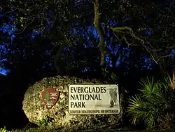 | Самый большой в западном полушарии участок мангрового леса уже был в этом списке (1993—2007) из-за уменьшения речного стока и урагана 1992 года. В 2010 году парк снова внесён в список находящихся под угрозой из-за продолжающейся деградации. Экологическая катастрофа в Мексиканском заливе, произошедшая в опасной близости от Флориды, не числится в причинах повторного внесения в список. | |||||||