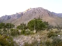 | Викторио-Пик | 6273 фута (1912 м) | 31°19′31″ с. ш. 104°52′16″ з. д. | Калберсон | ||