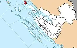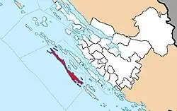 | Повляна хорв. Povljana | ![]() | 38,0 | 713 | 759 | 44°20′46″ с. ш. 15°06′46″ в. д. | хорваты — 95,92 % албанцы — 1,71 % | ![]() | [50][51] |