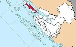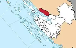 | Пакоштане хорв. Pakoštane | 79,0 | 3884 | 4123 | 43°54′25″ с. ш. 15°30′31″ в. д. | хорваты — 97,33 % | ![]() | [46][47] | |