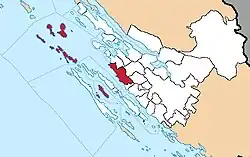 | Свети-Филип-и-Яков хорв. Sveti Filip i Jakov | 47,0 | 4482 | 4606 | 43°57′41″ с. ш. 15°25′37″ в. д. | хорваты — 97,89 % | ![]() | [66][67] | |