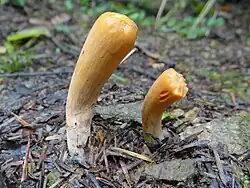 | Рогатик пестиковый | Clavariadelphus pistillaris (L.) Donk, 1933 | Плодовые тела простые, однолетние, широкобулавовидные, иногда с усеченной вершиной, постепенно суживающиеся к основанию, высотой 7—15 см, диаметром 2—6 см, гладкие или продольно-морщинистые, светло-желтые, с возрастом охряно-желтые, рыжеватые или кожано-бурые. Вид найден при проведении полевых работ в 2004—2005 гг. в Парабельском, Чаинском, Молчановском районах |