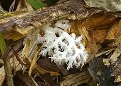 Ежовик коралловидный | Hericium coralloides (Scop.) Pers., 1794 | Плодовое тело крупное, может достигать размером 30—40 см, древовидно- или коралловидно-разветвленное, иногда у основания желвако-образное, мясистой консистенции, с возрастом твердеющее. При высушивании желтеет. В Томской области встречается в Бакчарском районе, Томском районе и г. Томске |