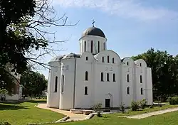 | 2. | Васильевская церковь | Владимир | XII—XIII век (?)[1] | Высокая. В 1844 году пристроен нартекс, крыша покрыта жестью. Облик искажён — в 1900—1901 годах по проекту русского архитектора К. Козлова внешний вид церкви переделан в русско-византийском стиле. Достроено крыльцо, над нартексом появился второй ярус, где расположены колокола, увенчанный небольшой главой. Над ротондой построен луковичный купол на барабане, декорированном кокошниками. | ![]() |