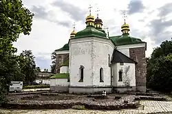 | 9. | Церковь Кирилла Александрийского | Киев | ок. 1140—1146. | Хорошая. Не сохранились верх главы и большая часть сводов. На рубеже XVII—XVIII веков переделана в стиле украинского барокко. Уцелели значительные фрагменты фресок XII века, частично переписанных в 1880-е гг. | ![]() |